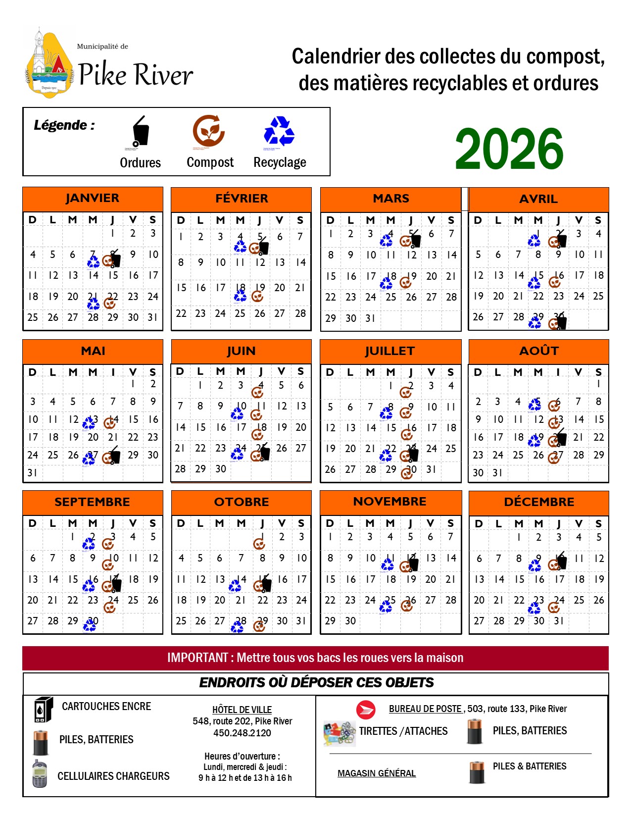 La municipalité est désormais inscrite au dépôt automatique pour les virements Interac. Ce mode de paiement simplifié permet un traitement plus rapide et sécurisé des transactions.