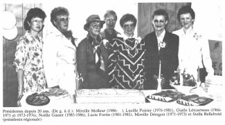Le 21 septembre 1986, lors de la messe du dimanche A.F.É.A.S., les 45 membres du Cercle fêtent les vingt ans de leur association. Elles soulignent le dévouement des femmes qui ont occupé le poste de présidente.